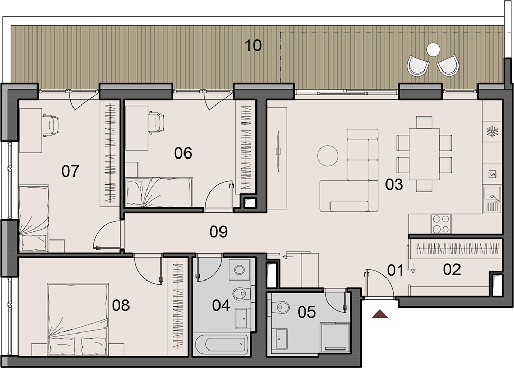 kamenna_marketing_aktualizovane_k_16_6_2025_hs_portaly-i_25k.pdfCena holobytu: 265 720€ Projekt: KamennáDom: BYTOVÝ DOM IPoschodie: 4. podlažieTyp bytu: 4KKPLOCHA INTERIÉRU: 94.90 m²PLOCHA EXTERIÉRU: 25.73 m²Celková plocha: 124.90 m² LEGENDA MIESTNOSTÍ č.m. názov m2 01 Chodba 4,32 m² 02 Šatník 4,40 m² 03 Obývacia izba s kuchyňou 30,34 m² 04 Kúpelňa 5,30 m² 05 WC + sprcha 4,55 m² 06 Izba 12,41 m² 07 Izba 13,78 m² 08 Izba 14,41 m² 09 Chodba 5,38 m² Plocha interiéru 94,90 m² 10 Terasa 25,73 m² Pivnica č.25 4,26 m² Parkovacie miesto vonakjšie Celková plocha 124,90 m² weburl: https://www.rezidenciakamenna.sk/kamenna/