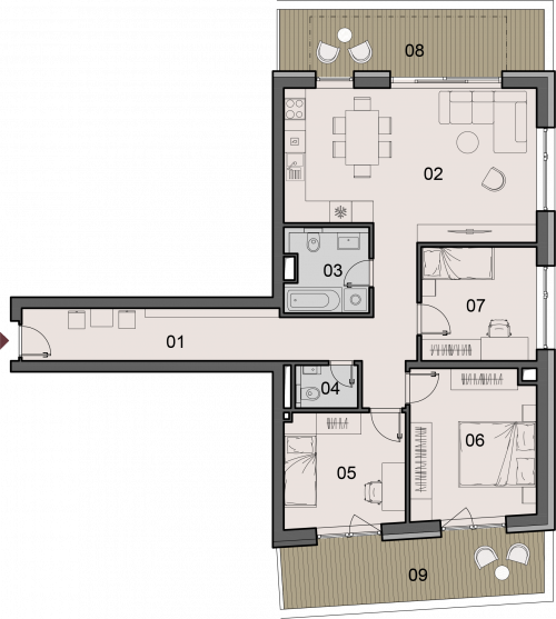 kamenna_marketing_aktualizovane_k_16_6_2025_hs_portaly-i_27k.pdfCena holobytu: 254 744€ Projekt: KamennáDom: BYTOVÝ DOM IPoschodie: 4. podlažieTyp bytu: 4KKPLOCHA INTERIÉRU: 90.98 m²PLOCHA EXTERIÉRU: 25.95 m²Celková plocha: 145.10 m² LEGENDA MIESTNOSTÍ č.m. názov m2 01 Chodba 19,31 m² 02 Obývacia izba s kuchyňou 29,11 m² 03 Kúpelňa 5,24 m² 04 WC 2,04 m² 05 Izba 10,82 m² 06 Izba 14,52 m² 07 Izba 9,94 m² Plocha interiéru 90,98 m² 08 Terasa 13,03 m² 09 Terasa 12,92 m² Parkovacie miesto - garáž G02 28,17 m² Celková plocha 145,10 m² weburl: https://www.rezidenciakamenna.sk/kamenna/