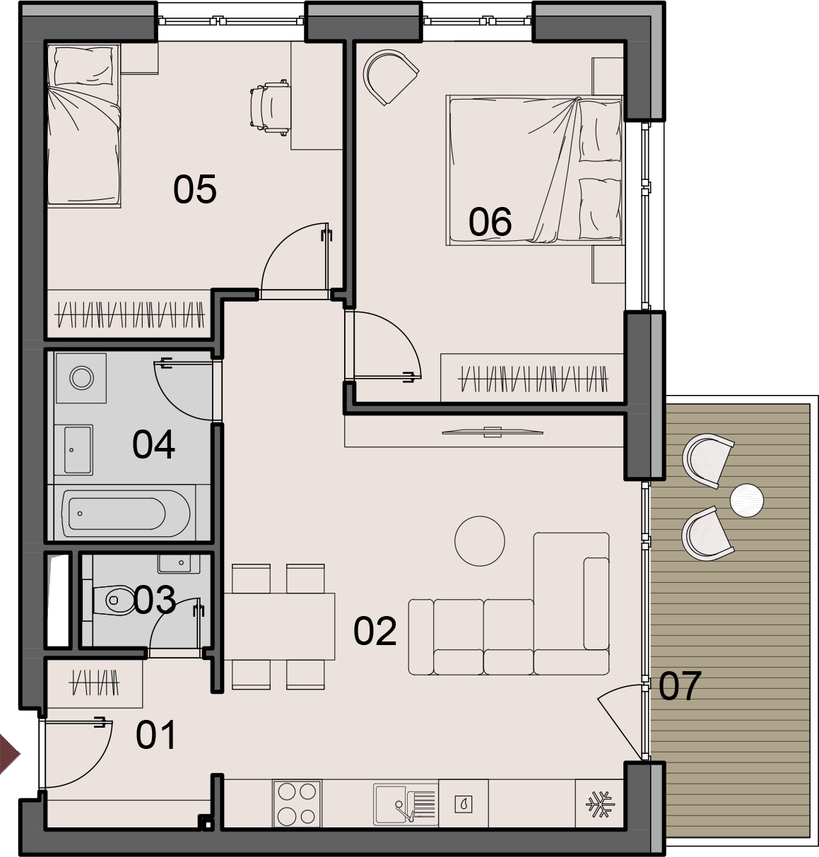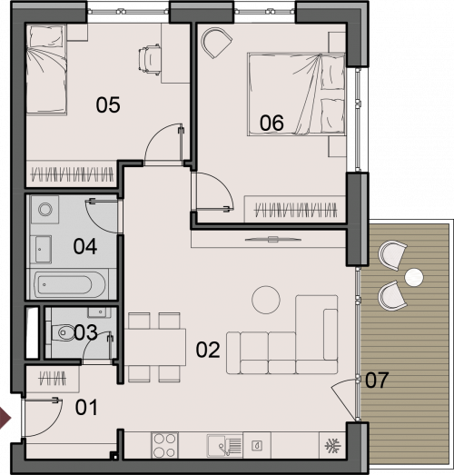 kamenna_marketing_bd_j-j_09k_0.pdfCena holobytu: 172 415€ Projekt: KamennáDom: BYTOVÝ DOM JPoschodie: 2. podlažieTyp bytu: 3KKPLOCHA INTERIÉRU: 63.93 m²PLOCHA EXTERIÉRU: 9.64 m²Celková plocha: 77.20 m² LEGENDA MIESTNOSTÍ č.m. názov m2 01 Chodba 4,28 m² 02 Obývacia izba s kuchyňou 27,16 m² 03 WC 1,82 m² 04 Kúpelňa 4,64 m² 05 Izba 11,88 m² 06 Izba 14,14 m² Plocha interiéru 63,93 m² 07 Balkón 9,64 m² Pivnica č.09 3,58 m² Parkovacie miesto vonkajšie Celková plocha 77,16 m² weburl: https://www.rezidenciakamenna.sk/kamenna/
