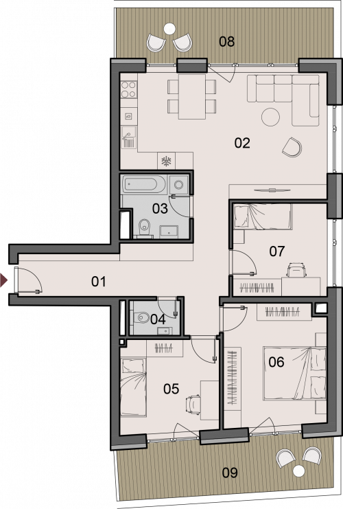 kamenna_marketing_bd_j_zmena_na_4._np_podorys-i_29k.pdfCena holobytu: 256 140€ Projekt: KamennáDom: BYTOVÝ DOM JPoschodie: 4. podlažieTyp bytu: 4KKPLOCHA INTERIÉRU: 85.38 m²PLOCHA EXTERIÉRU: 25.95 m²Celková plocha: 139.50 m² LEGENDA MIESTNOSTÍ č.m. názov m2 01 Chodba 15,31 m² 02 Obývacia izba s kuchyňou 28,03 m² 03 Kúpelňa 4,73 m² 04 WC 2,04 m² 05 Izba 10,82 m² 06 Izba 14,52 m² 07 Izba 9,94 m² Plocha interiéru 85,38 m² 08 Terasa 13,03 m² 09 Terasa 12,92 m² Parkovacie miesto - garáž G02 28,17 m² Celková plocha 139,50 m² weburl: https://www.rezidenciakamenna.sk/kamenna/