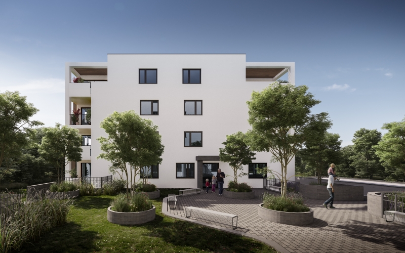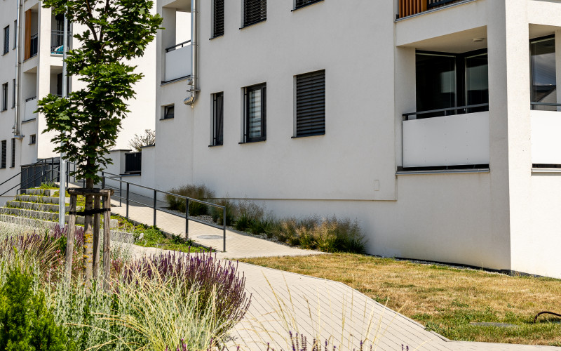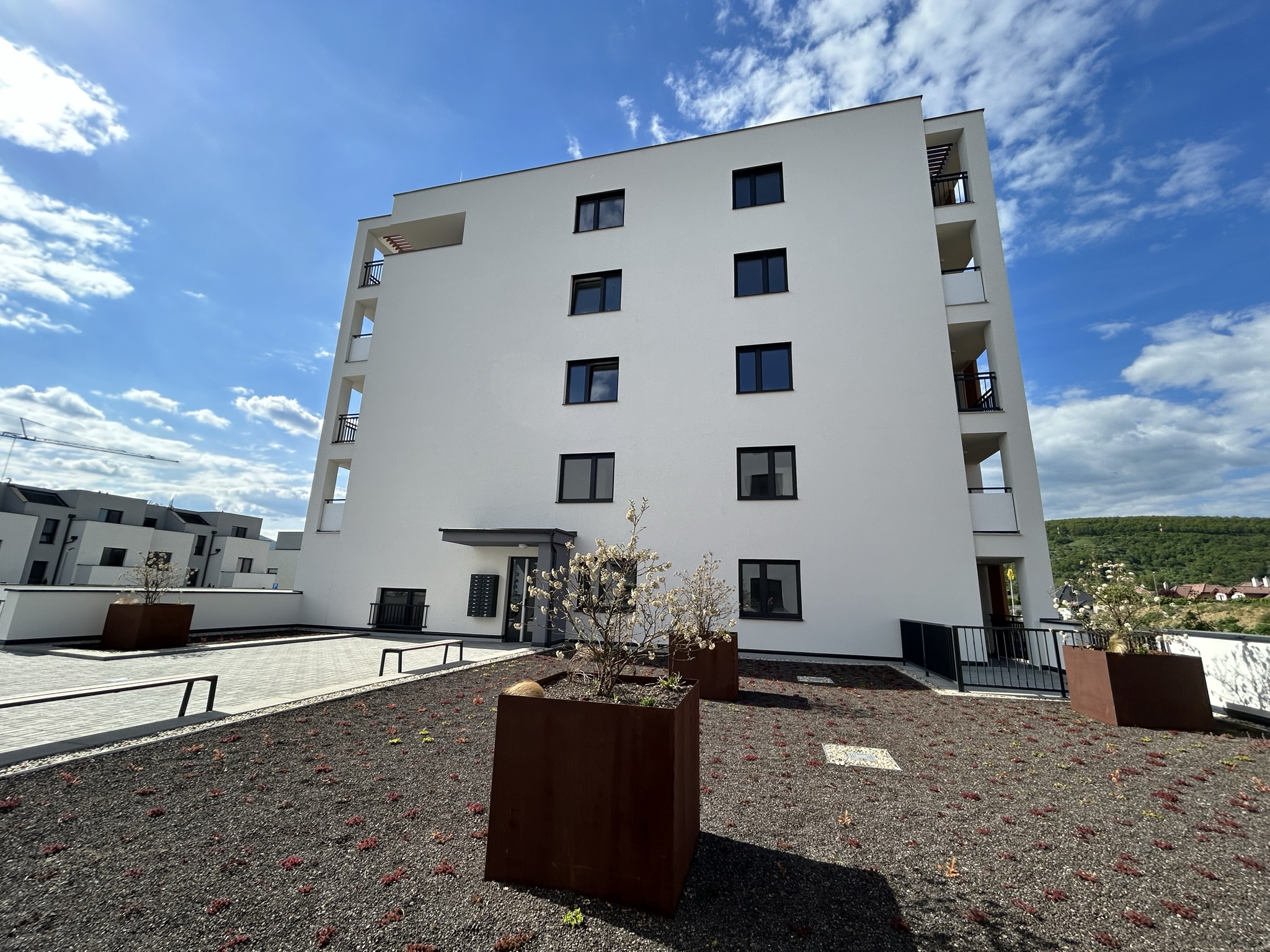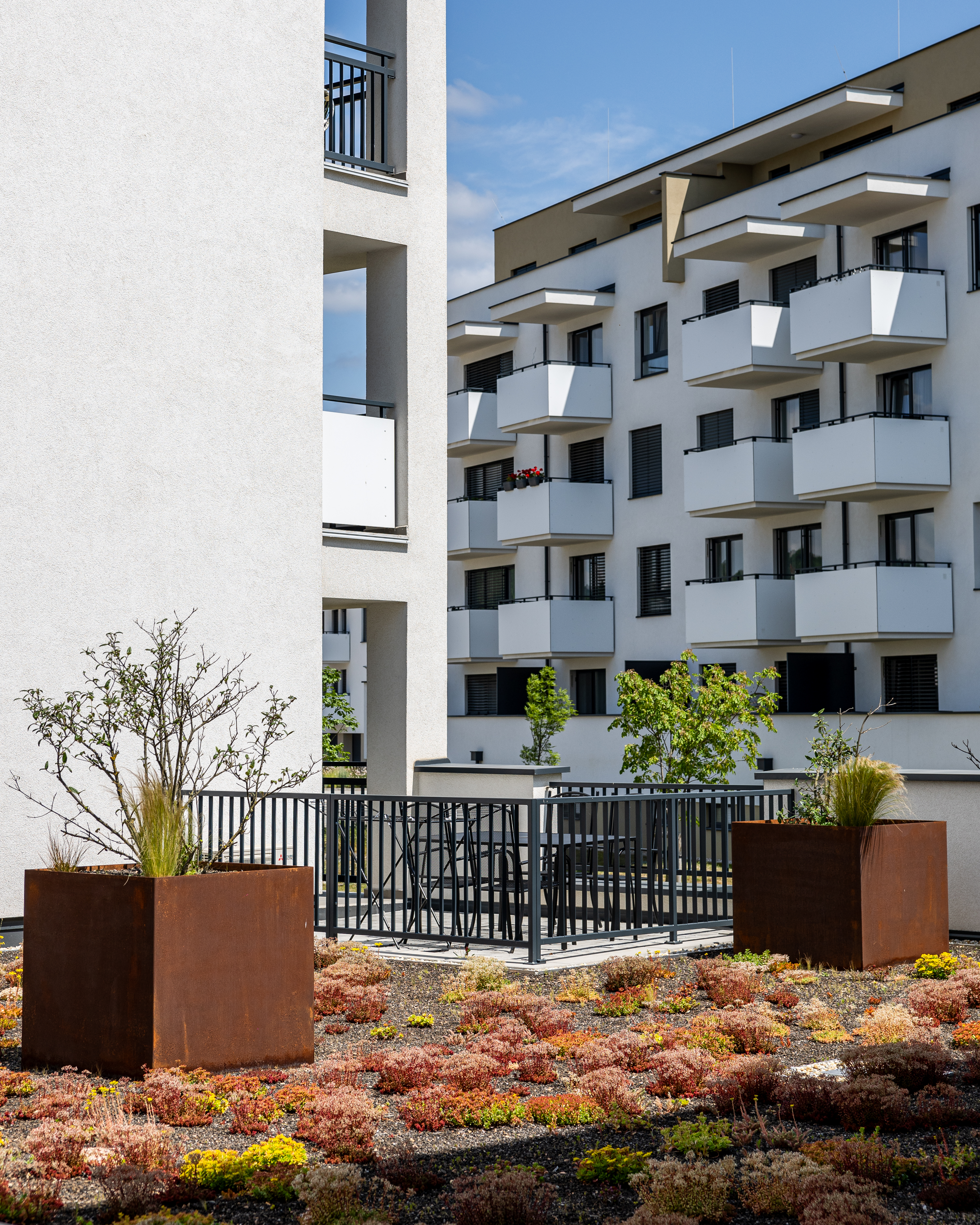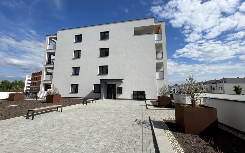 Bytový dom predstavuje inovatívne architektonické riešenie, pričom pozostáva z dvoch obytných veží. Objekty sú prepojené polozapusteným suterénom, ktorý disponuje parkovacími miestami. Dominantou tohto riešenia sa stáva oddychový priestor medzi objektmi, ktorý poskytuje miesto stvorené pre relax a oddych obyvateľom bytovému domu s dotykom prírody.