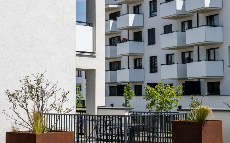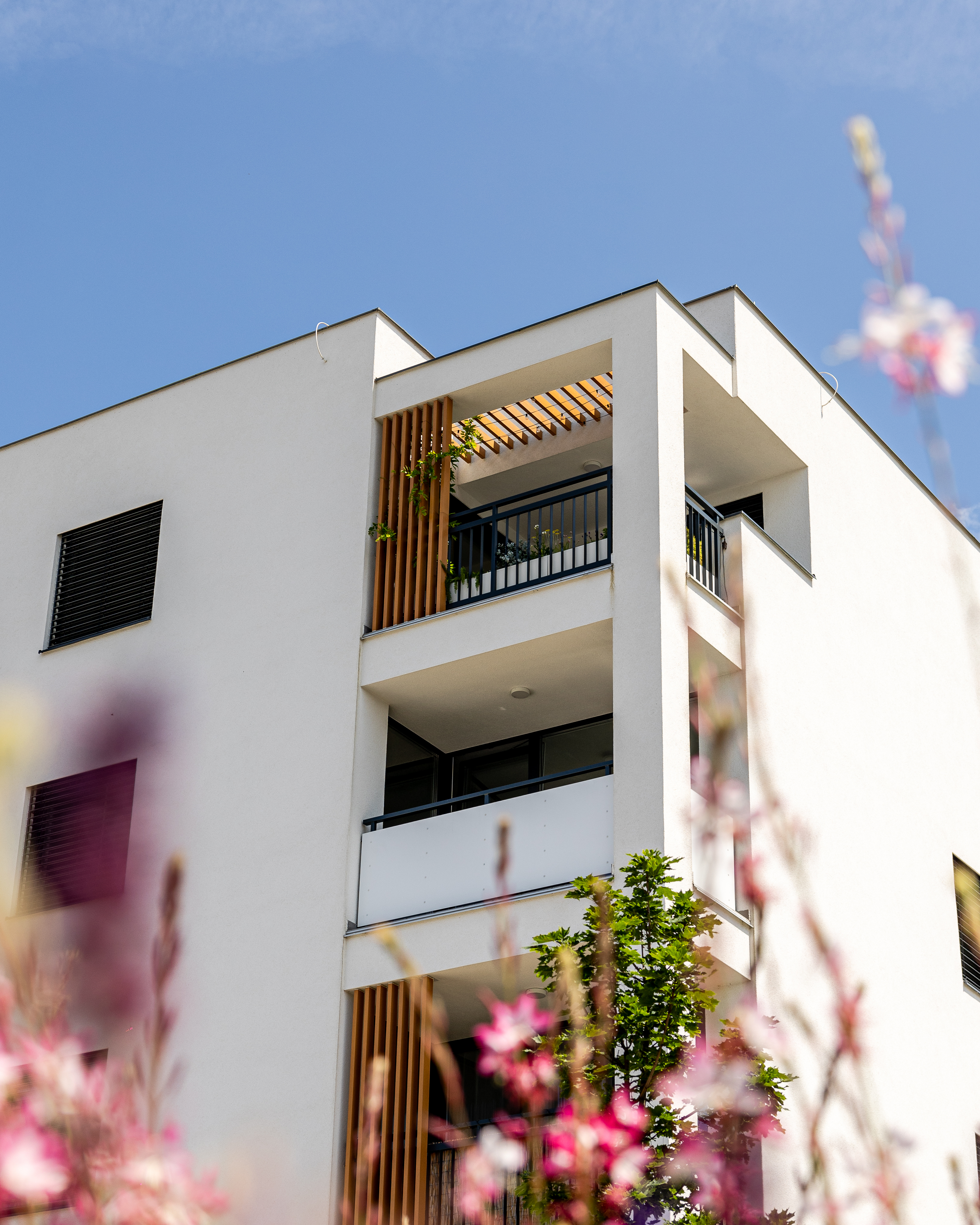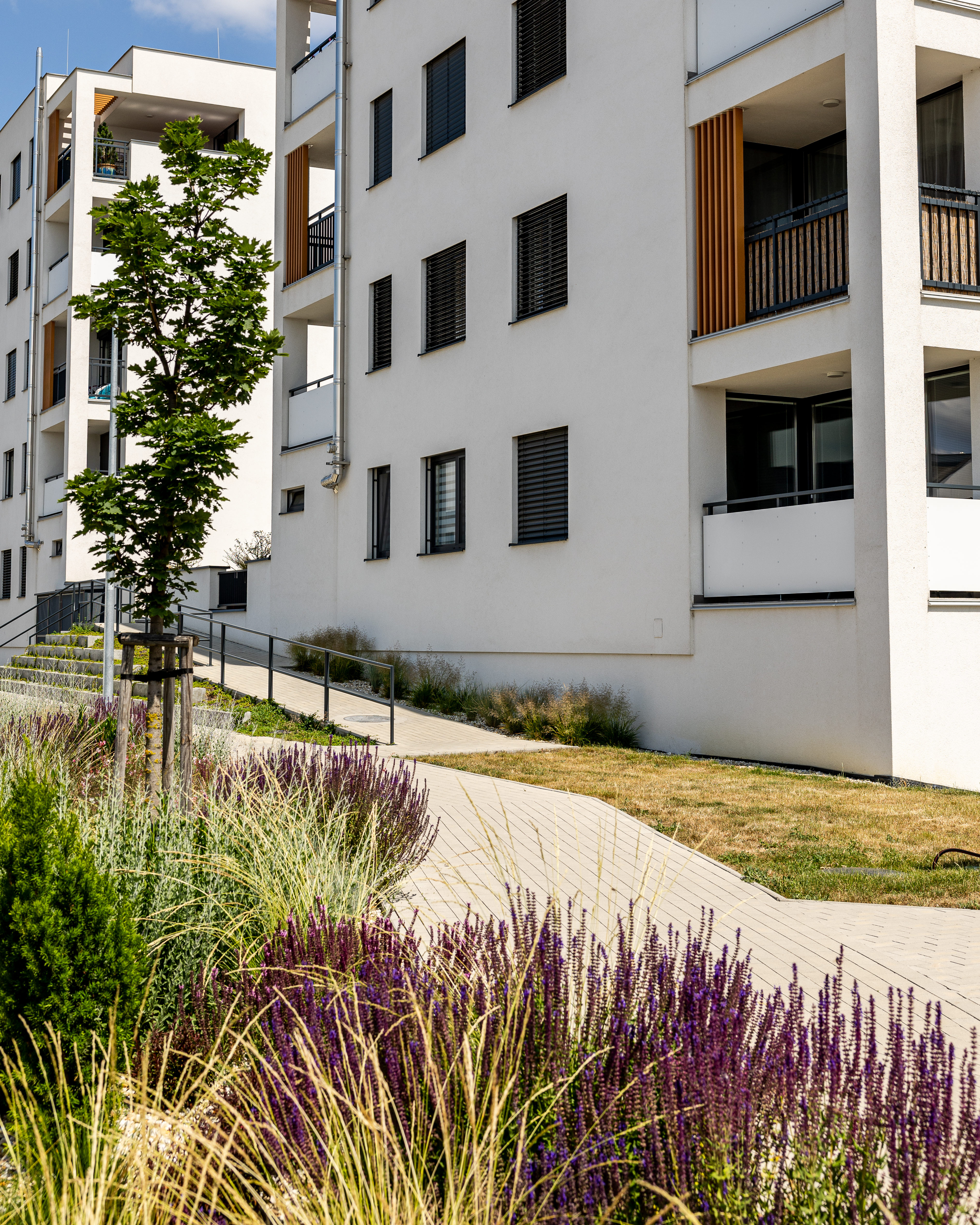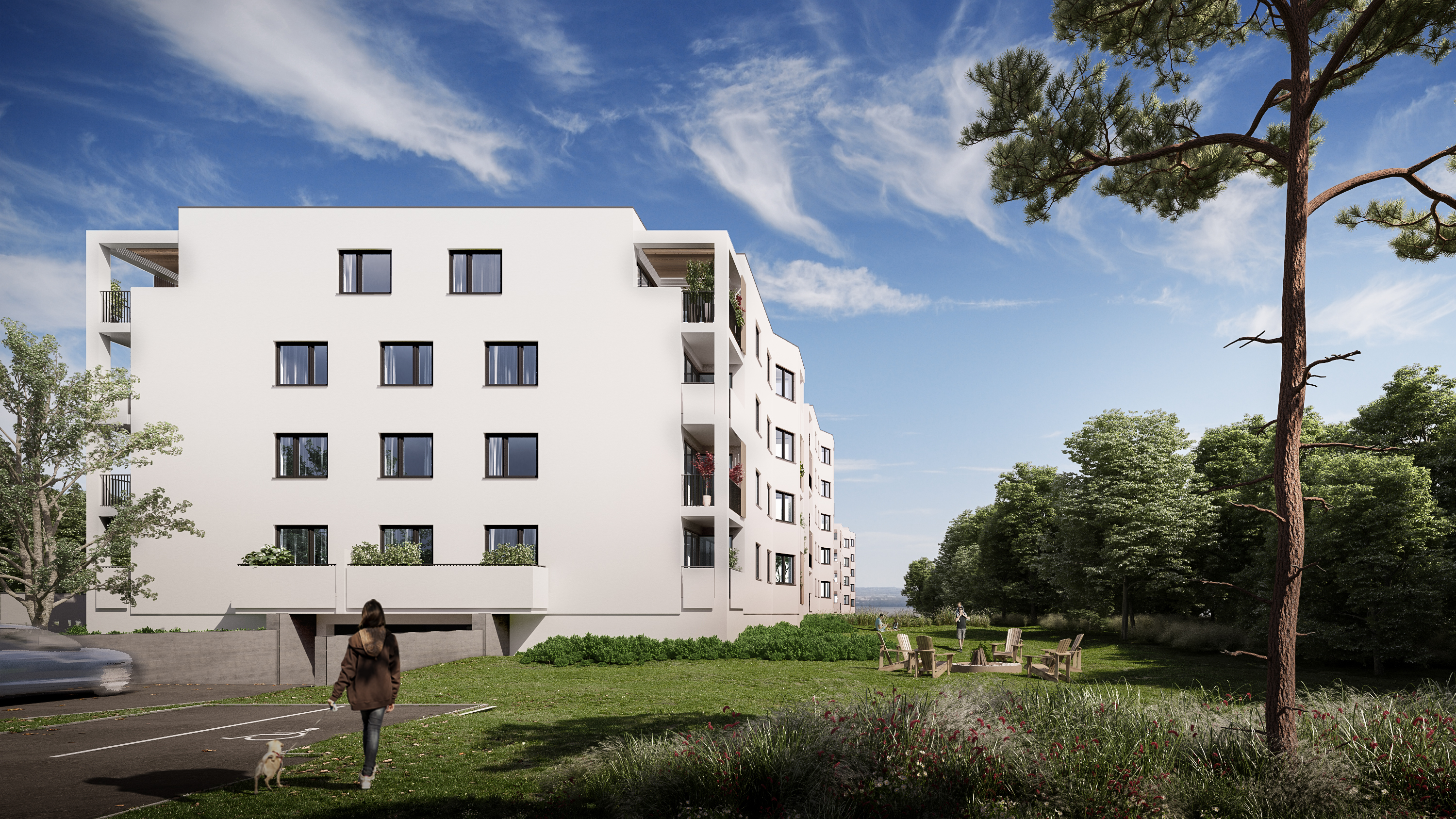 Bytový dom predstavuje inovatívne architektonické riešenie, pričom pozostáva z dvoch obytných veží. Objekty sú prepojené polozapusteným suterénom, ktorý disponuje parkovacími miestami. Dominantou tohto riešenia sa stáva oddychový priestor medzi objektmi, ktorý poskytuje miesto stvorené pre relax a oddych obyvateľom bytovému domu s dotykom prírody.