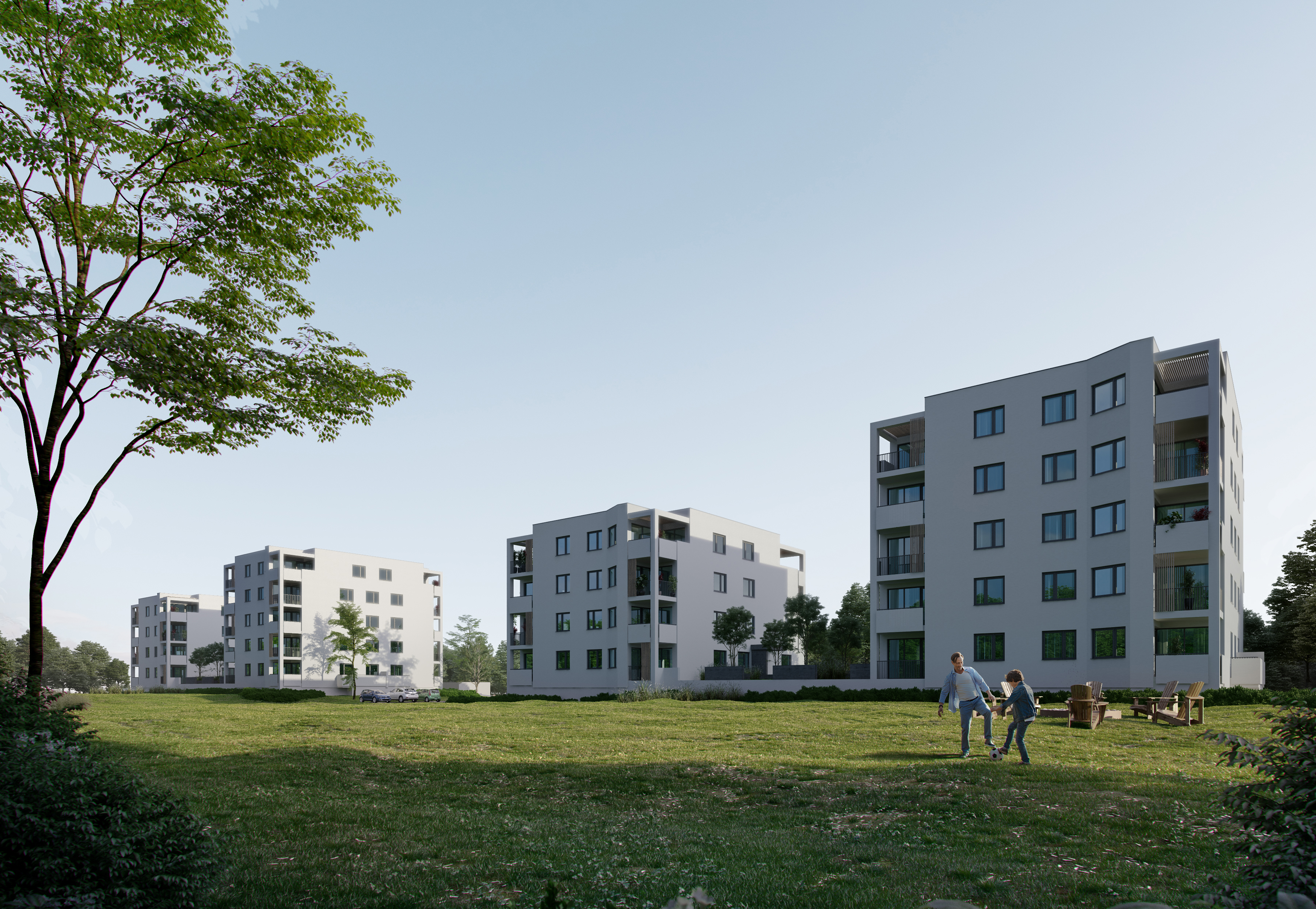 Bytové domy Dve Veže vyrástli v novej modernej atraktívnej lokalite s výstavbou nízko podlažných objektov. Svojou kompozíciou zapadajú do okolitého prostredia. Lokalita spája kombináciu pokojného bývania s ľahkou dostupnosťou centra mesta.