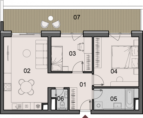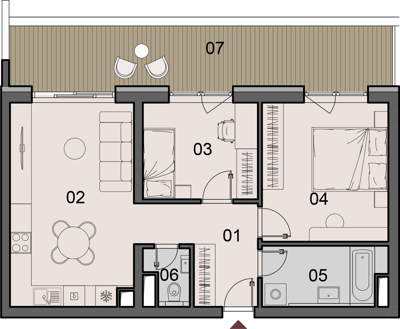 kamenna_marketing_bd_j_zmena_na_4._np_podorys-i_27k.pdfCena holobytu: 176 610€ Projekt: KamennáDom: BYTOVÝ DOM JPoschodie: 4. podlažieTyp bytu: 3KKPLOCHA INTERIÉRU: 58.87 m²PLOCHA EXTERIÉRU: 19.27 m²Celková plocha: 82.40 m² LEGENDA MIESTNOSTÍ č.m. názov m2 01 Chodba 7,56 m² 02 Obývacia izba s kuchyňou 20,30 m² 03 Izba 9,20 m² 04 Izba 14,29 m² 05 Kúpelňa 5,75 m² 06 WC 1,76 m² Plocha interiéru 58,87 m² 07 Terasa 19,27 m² Pivnica č. 27 4,26 m² Parkovacie miesto vonkajšie Celková plocha 82,40 m² weburl: https://www.rezidenciakamenna.sk/kamenna/