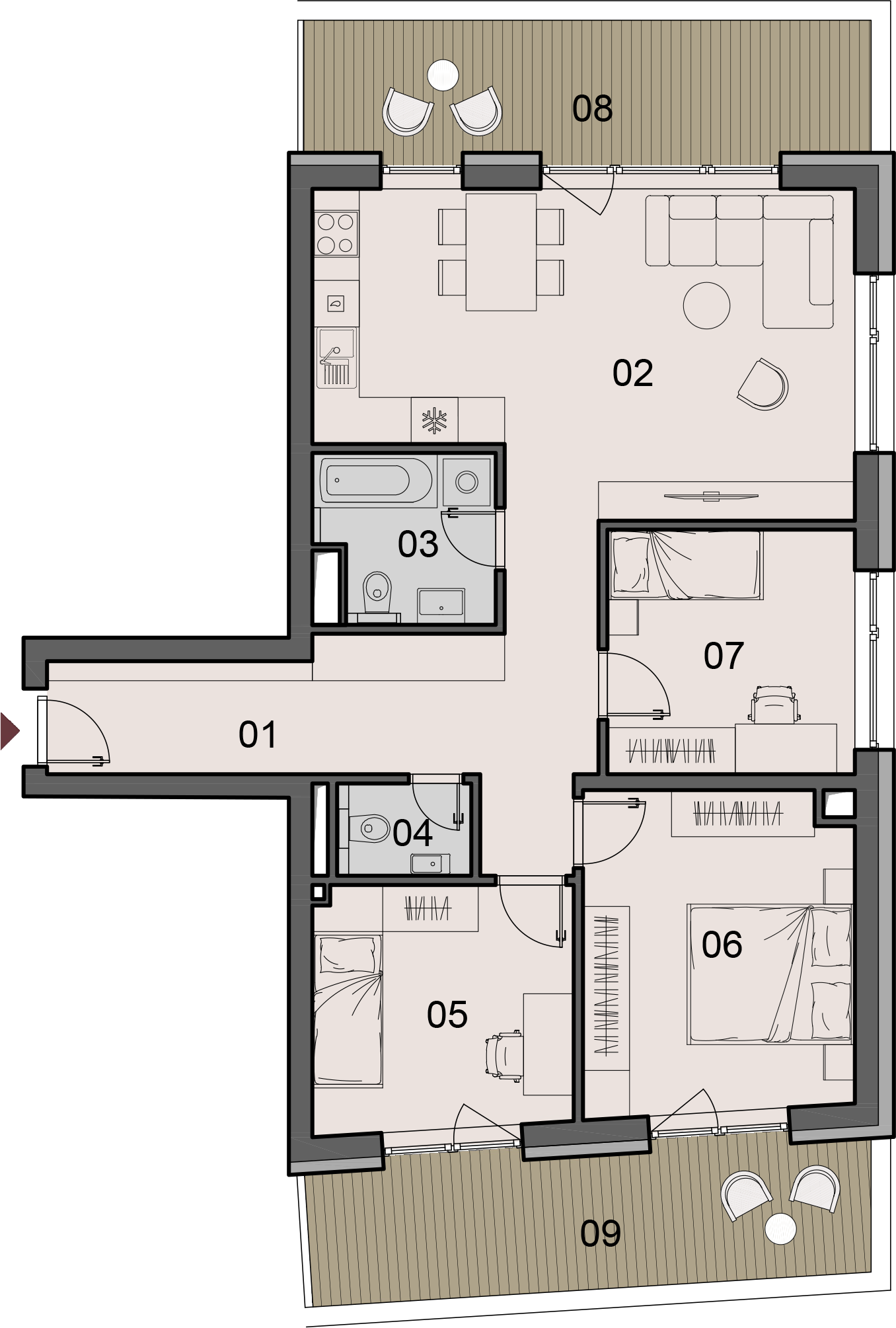 kamenna_marketing_bd_j_zmena_na_4._np_podorys-i_29k.pdfCena holobytu: 256 140€ Projekt: KamennáDom: BYTOVÝ DOM JPoschodie: 4. podlažieTyp bytu: 4KKPLOCHA INTERIÉRU: 85.38 m²PLOCHA EXTERIÉRU: 25.95 m²Celková plocha: 139.50 m² LEGENDA MIESTNOSTÍ č.m. názov m2 01 Chodba 15,31 m² 02 Obývacia izba s kuchyňou 28,03 m² 03 Kúpelňa 4,73 m² 04 WC 2,04 m² 05 Izba 10,82 m² 06 Izba 14,52 m² 07 Izba 9,94 m² Plocha interiéru 85,38 m² 08 Terasa 13,03 m² 09 Terasa 12,92 m² Parkovacie miesto - garáž G02 28,17 m² Celková plocha 139,50 m² weburl: https://www.rezidenciakamenna.sk/kamenna/